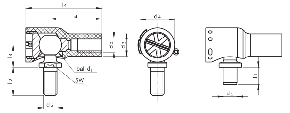 Artículo | D1 | D2 | L1 | a | D3 | d4 | d5 H11 | L2 ± 0.3 | L3 ± 0.3 | L4 | SUDOESTE H14 | Peso (g) (Formulario C) |